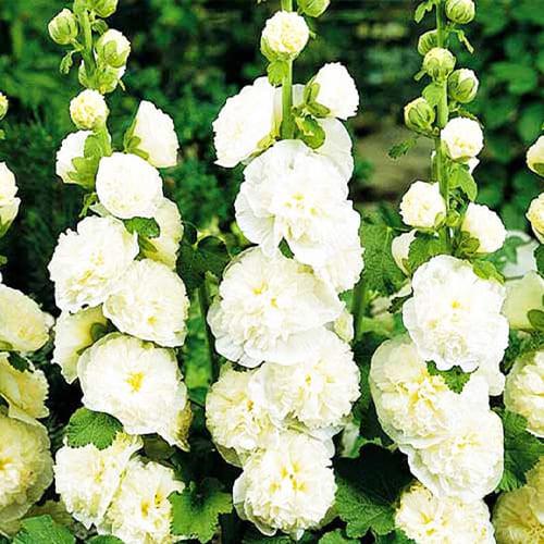 Цей сорт вважається еталонним серед махрових мальв. Його великі, півонієподібні квіти утворюють вертикальні “свічки” краси на міцних високих стеблах.